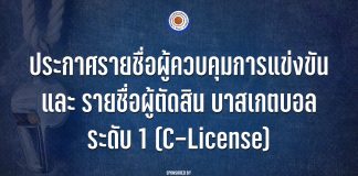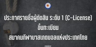 ประกาศรายชื่อ ผู้ควบคุมการแข่งขัน และ ผู้ตัดสิน ระดับ 1 (C-License)