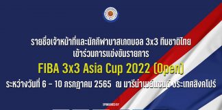 รายชื่อเจ้าหน้าที่และนักกีฬาบาสเกตบอล 3×3 ทีมชาติไทยเข้าร่วมการแข่งขันรายการ FIBA 3×3 Asia Cup 2022 (Open)
