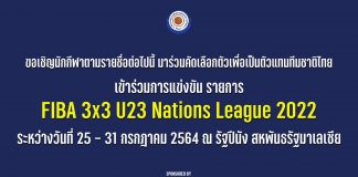 ขอเชิญนักกีฬาตามรายชื่อต่อไปนี้ มาร่วมคัดเลือกตัวเพื่อเป็นตัวแทนทีมชาติไทย เข้าร่วมการแข่งขัน รายการ FIBA 3×3 U23 Nations League 2022