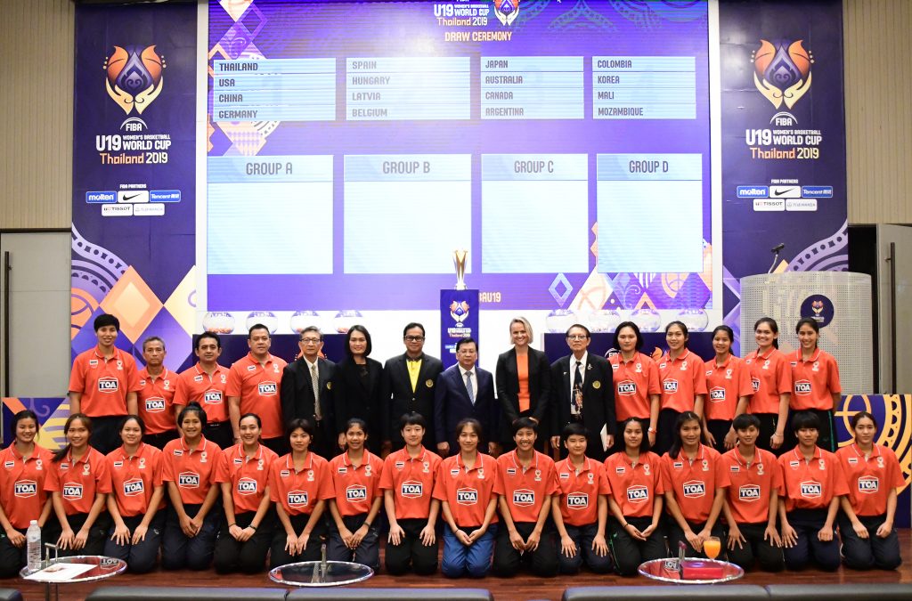 พ.ท.รุจ แสงอุดม รองผู้ว่าการกีฬาแห่งประเทศไทย (กกท.), นายทวีศักดิ์ เลิศประพันธ์ รองผู้ว่าราชการกรุงเทพมหานคร และ นายนิพนธ์ ชวลิตมณเฑียร นายกสมาคมกีฬาบาสเกตบอลแห่งประเทศไทย ร่วมแถลงข่าวการจัดการแข่งขัน บาสเกตบอลชิงแชมป์โลก รายการ FIBA U19 Women’s Basketball World Cup 2019 โดยมีสักขีพยานจากชาติต่าง ๆ ได้แก่ Mr.Georg Schmidt เอกอัครราชฑูตประเทศเยอรมัน, H.E.Mr.Szilveszter bus เอกอัครราชฑูตประเทศฮังการี, Mr.Peter M. Haymond อุปฑูตประเทศสหรัฐอเมริกา, Mr.Juan Gaviria อุปฑูตรักษาการประเทศโคลอมเบีย, Mr.Shigeki Kobayashi อุปทูตประเทศญี่ปุ่น Mr.Pablo Spabir ทูตการค้าประเทศอาร์เจนตินา และ คุณเรนู อาจคุ้มวงศ์ เลขากงศุลกิตติมศักดิ์ ประเทศโมซัมบิก ร่วมงาน พร้อมทั้งดารา ศิลปิน และสื่อมวลชนเข้าร่วมงานอย่างคับคั่ง