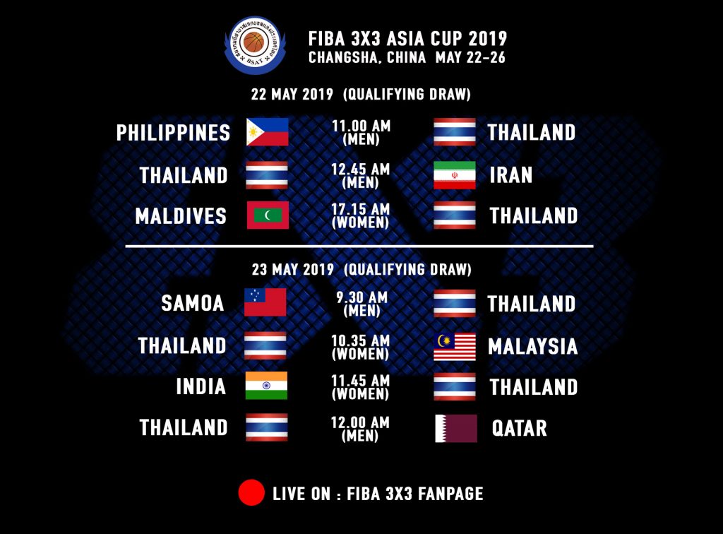 รายการ “FIBA 3X3 ASIA CUP 2019 OPEN CATAGORY” ระหว่างวันที่ 22-26 พฤษภาคม 2562 ณ เมืองฉางซา สาธารณรัฐประชาชนจีน
