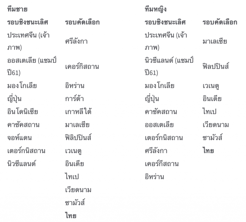 รายชื่อโค้ช นักกีฬา ชาย-หญิง