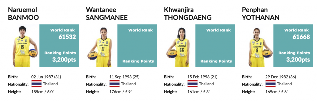 การแข่งขันบาสเกตบอล FIBA 3X3 ASIA CUP 2019 รอบ Qualifying Draw ณ เมืองฉางซา สาธารณรัฐประชาชนจีน นักกีฬาหญิง ทีมชาติไทย ประกอบด้วย
