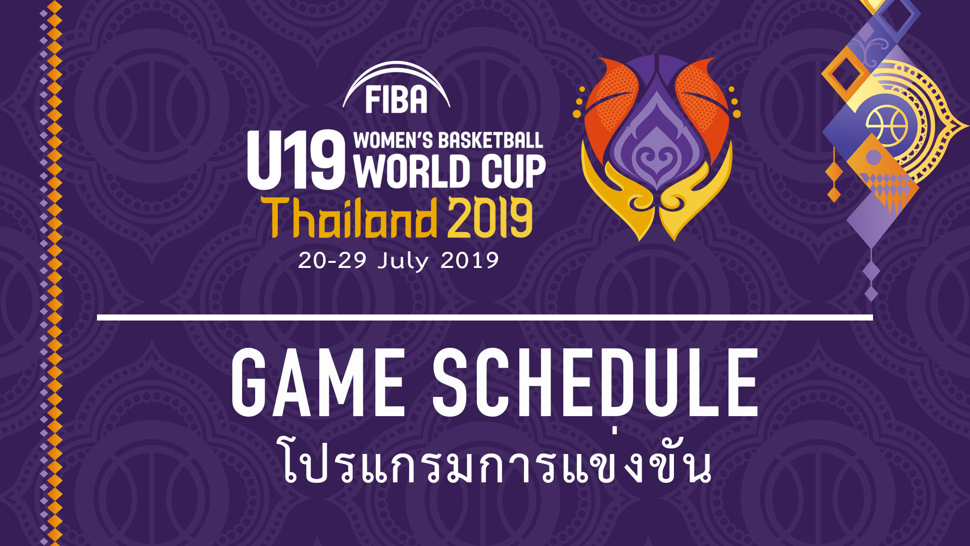 โปรแกรม การแข่งขันบาสเกตเบอล FIBA U19 WOMENS WORLD CUP 2019 ระหว่างวันที่ 20-28 กรกฎาคม 2562 ณ สนามอาคารกีฬาเวสน์ 1 และ 2 ศูนย์เยาวชนไทยญี่ปุ่น ดินแดง ประเทศไทย มีทั้งสิ้น 16 ทีมจากทั่วโลกเข้าร่วมการแข่งขัน