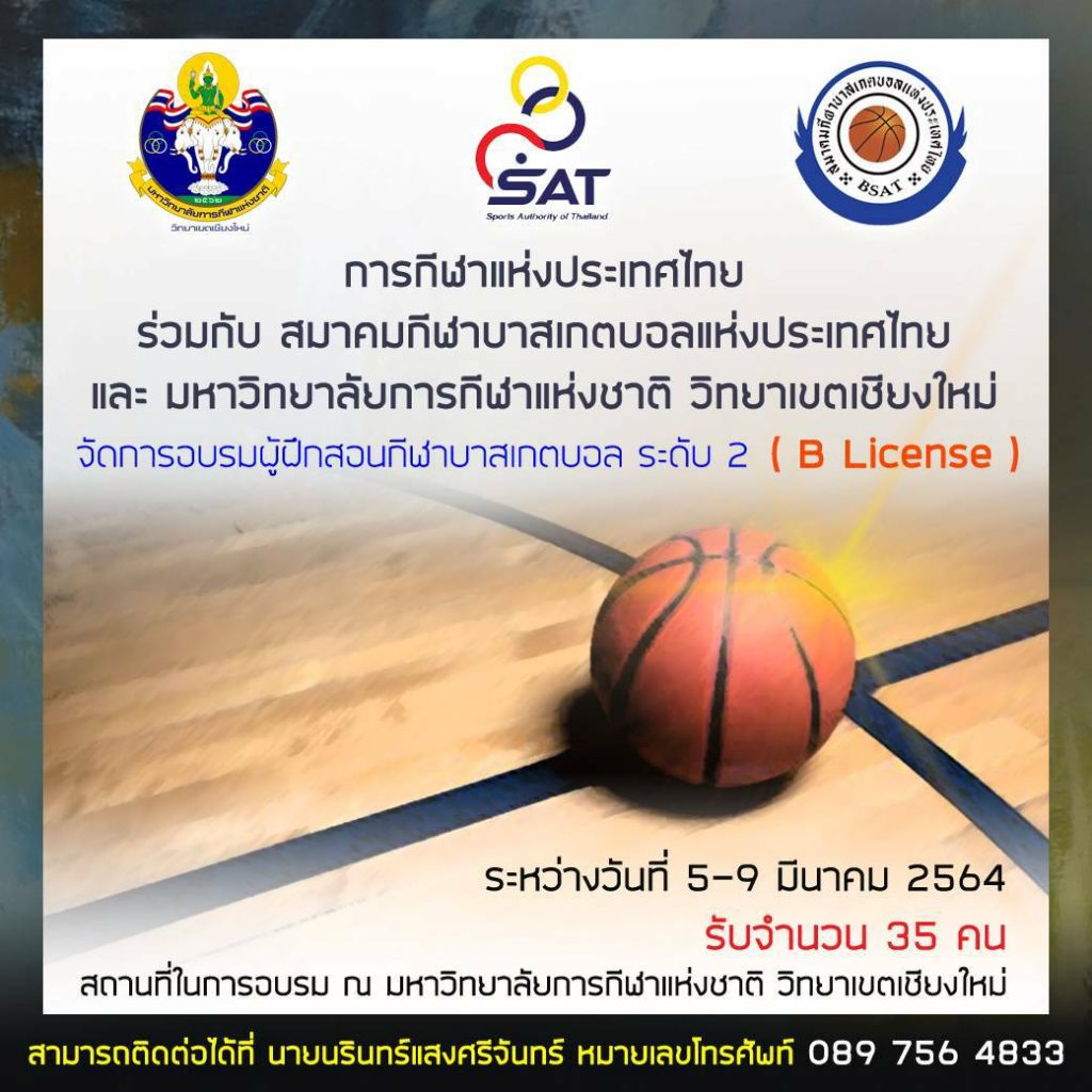 Home ข่าวสารสมาคม กกท.ร่วมกับ ส.บาสฯ และ ม.กีฬาแห่งชาติ (เชียงใหม่) จัดอบรมผู้ฝึกสอนบาสฯ ระดับ 2 (B-License) ข่าวสารสมาคม กกท.ร่วมกับ ส.บาสฯ และ ม.กีฬาแห่งชาติ (เชียงใหม่) จัดอบรมผู้ฝึกสอนบาสฯ ระดับ 2 (B-License) By admin - 04/03/2021 354 0 Share Facebook RELATED ARTICLESMORE FROM AUTHOR Uncategorized รายชื่อ เจ้าหน้าที่ และ นักกีฬาบาสเกตบอลชายทีมชาติไทยรายการ24th Super Kung Sheung InvitationBasketball Championship 2025 ข่าวสารสมาคม รายชื่อนักกีฬาบาสฯหญิง ทีมชาติไทย รายการ 44th William Jones Cup International Basketball Tournament 2025 และ FIBA Women’s Asia Cup 2025 – Division B 3x3 TOA BASKETBALL ALL THAILAND เปิดรับสมัครทีมเข้าร่วมแข่งขัน 3×3 TOA BASKETBALL ALL THAILAND 2025 : 10 สนามทั่วประเทศ 3x3 ROAD TO CHAMPIONS CUP รายชื่อเจ้าหน้าที่และนักกีฬาบาสเกตบอล 3×3 ทีมชาติไทย เพื่อเก็บตัวฝึกซ้อมแข่งขันรายการFIBA 3×3 Sponsor | Red Bull Champions Cup 2025ณ ลาน CentralWorld กรุงเทพมหานครและเดินทางเข้าร่วมการแข่งขันรายการ FIBA 3×3 Asia Cup 2025 ณ ประเทศสิงคโปร์ THAILAND OPEN MASTERS GAMES 2025 เปิดรับสมัครทีมเข้าร่วมการแข่งขันบาสเกตบอลรายการผู้สูงอายุนานาชาติครั้งที่ 5 “5th Thailand Open Masters Games”