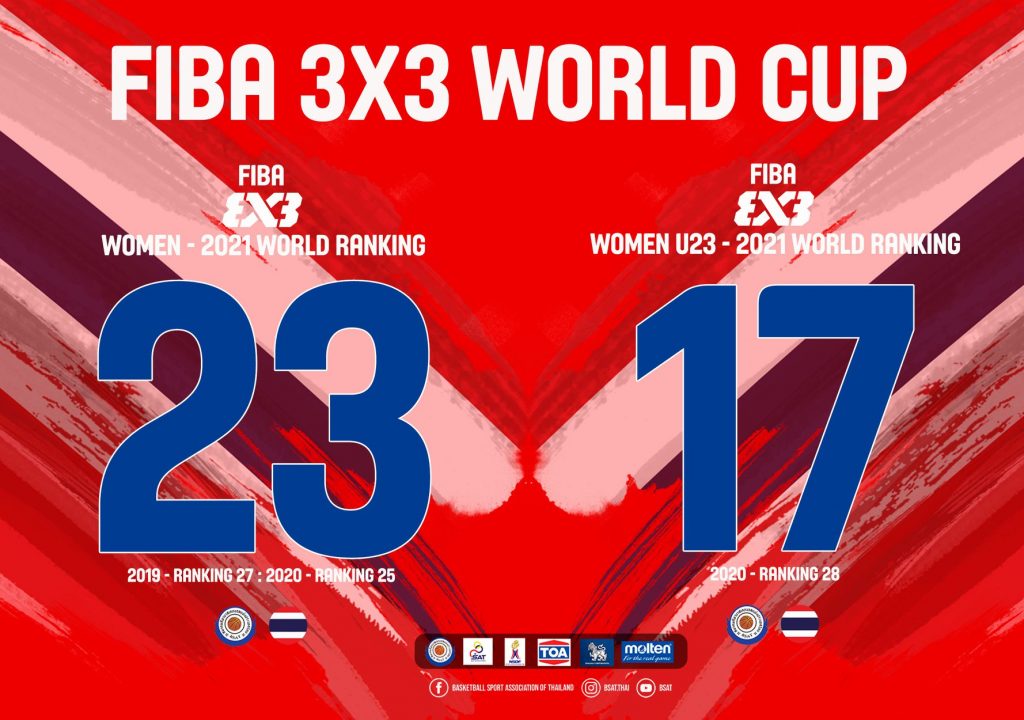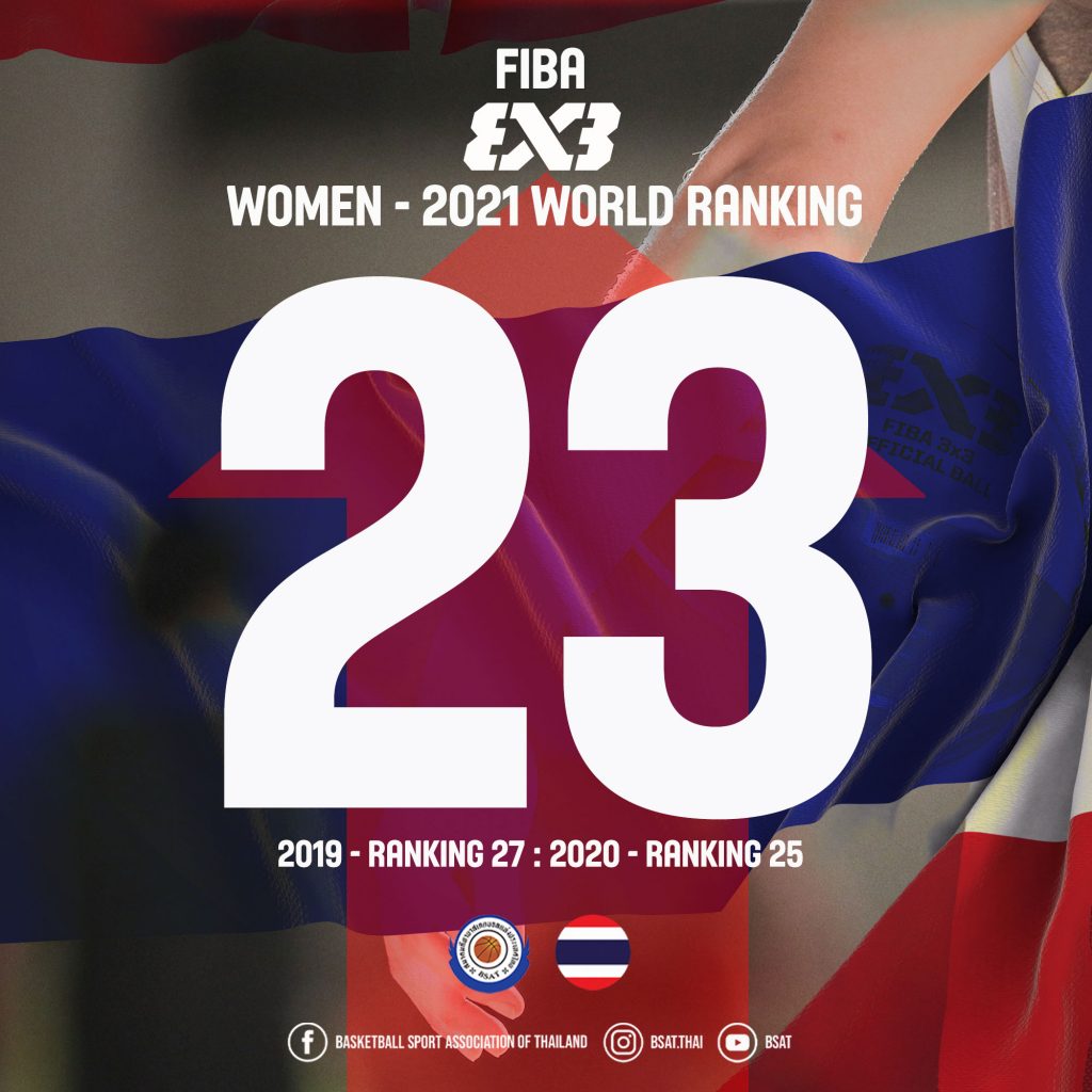 ทีมบาสเกตบอลหญิง 3X3 ของไทยหลังจากที่ปี 2563 ที่ผ่านมา สามารถทำอันดับโลกขึ้นมาจากอันดับที่ 27 ในปี 2562 ขึ้นมาอันดับ 25 ในปี 2563 และปี 2564 นี้จากการอัพเดทล่าสุด ทีมชาติไทยก้าวขึ้นมาอยู่ในอันดับที่ 23 ของโลกเป็นที่เรียบร้อย