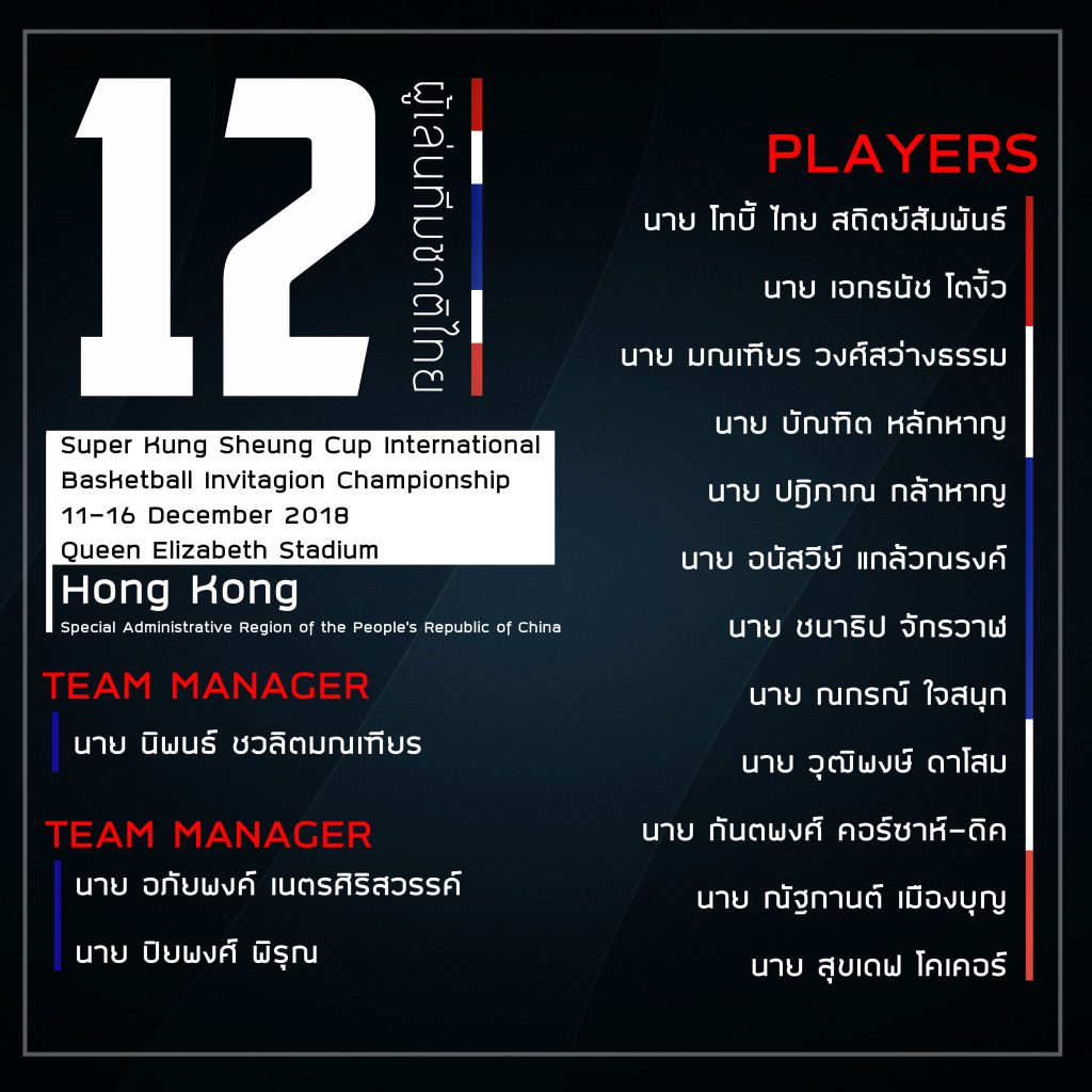 ชุด 22nd Super Kung Sheung Cup International Basketball Invitagion Championship ระหว่างวันที่ 11-16 ธันวาคม 2561 ณ เขตบริหารพิเศษฮ่องกง สาธารณรัฐประชาชนจีน