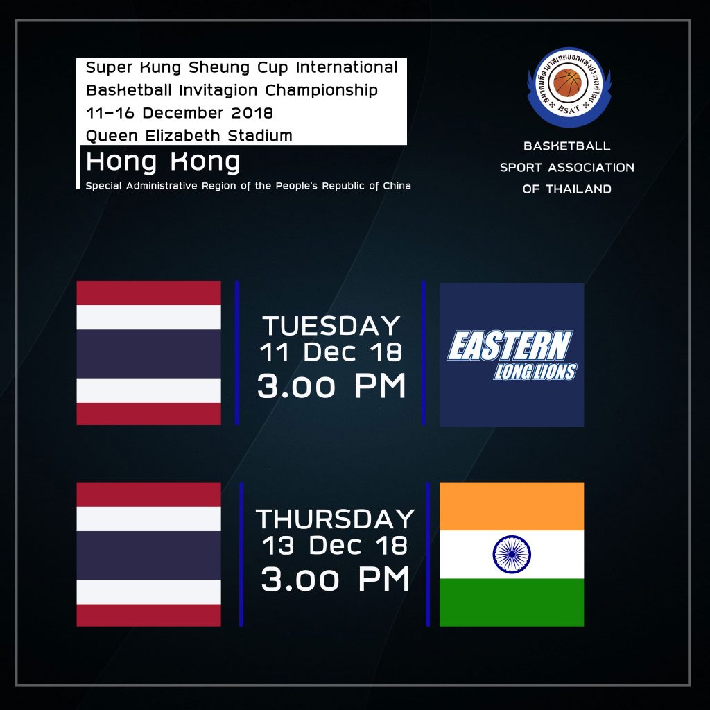 โดยนัดแรกทีมชาติไทยจะลงทำการแข่งขันกับทีม Eastern Long Lions (Hong Kong) ในวันอังคารที่ 11 ธ.ค. 61 เวลา 15.00 น.