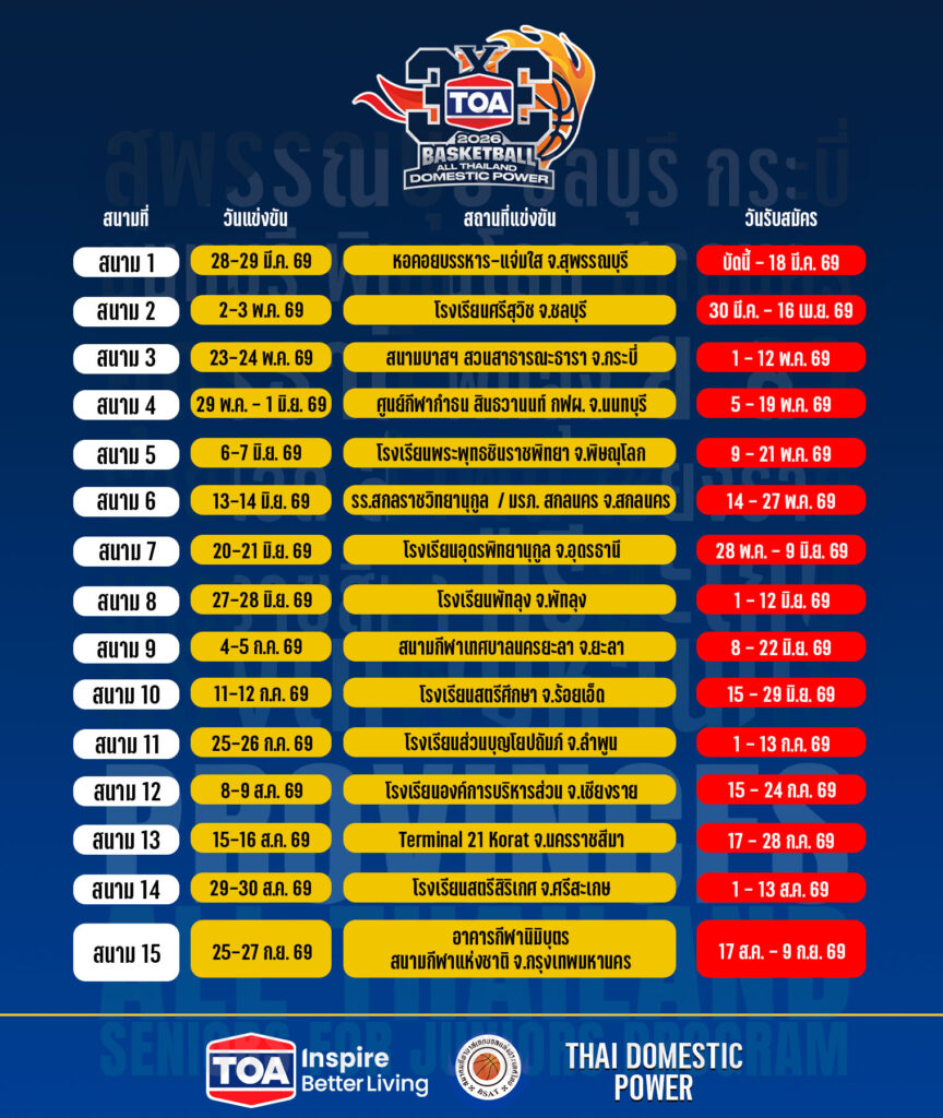 เปิดรับสมัครทีมที่สนใจเข้าร่วมการแข่งขันบาสเกตบอล 3×3 รายการ TOA 3X3 BASKETBALL ALL THAILAND 2025