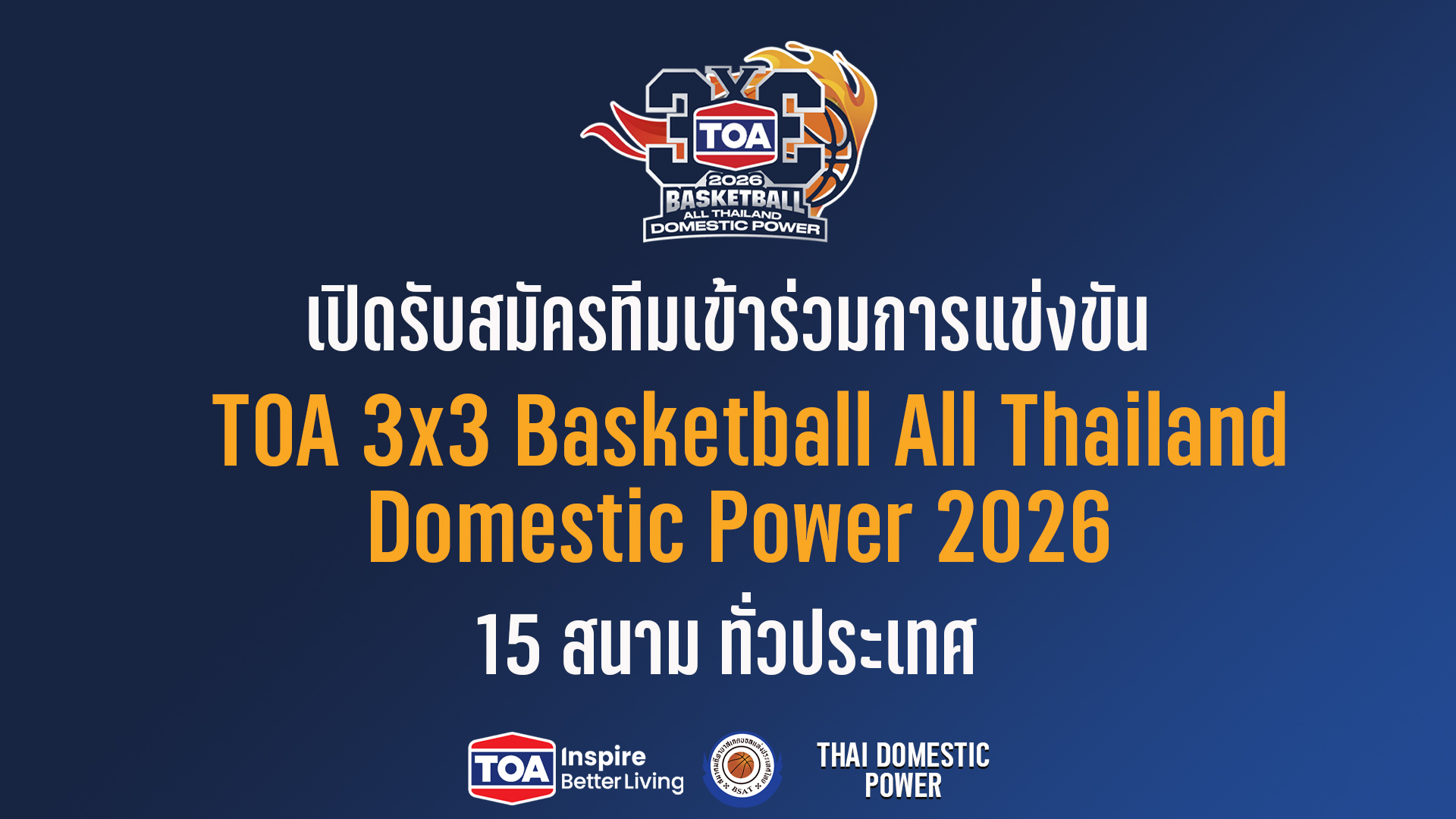 TOA 3X3 BASKETBALL ALL THAILAND – DOMESTIC POWER รายการ 3 x 3 ที่ยิ่งใหญ่ที่สุดของประเทศ และปีนี้ เสริมความยิ่งใหญ่สุดอลังการ