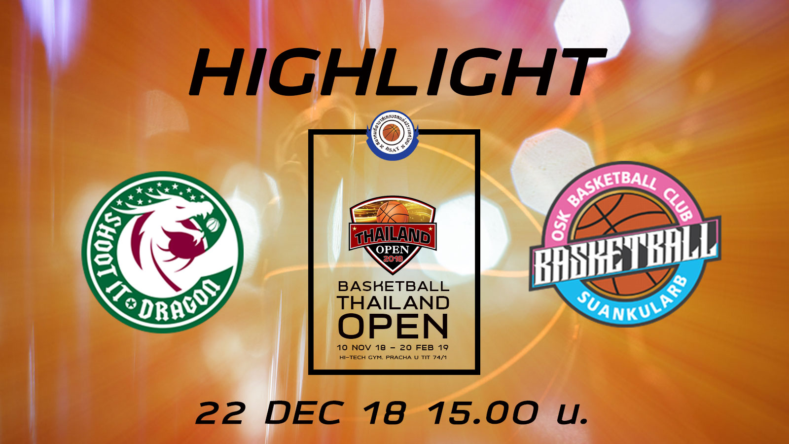 ไฮไลท์การแข่งขันบาสเกตบอลไทยแลนด์โอเพ่น 2018 ประจำวันเสาร์ที่ 22 ธันวาคม 2561 คู่ที่สอง ระหว่าง สโมสร Shoot it Dragon พบกับ สโมสร OSK